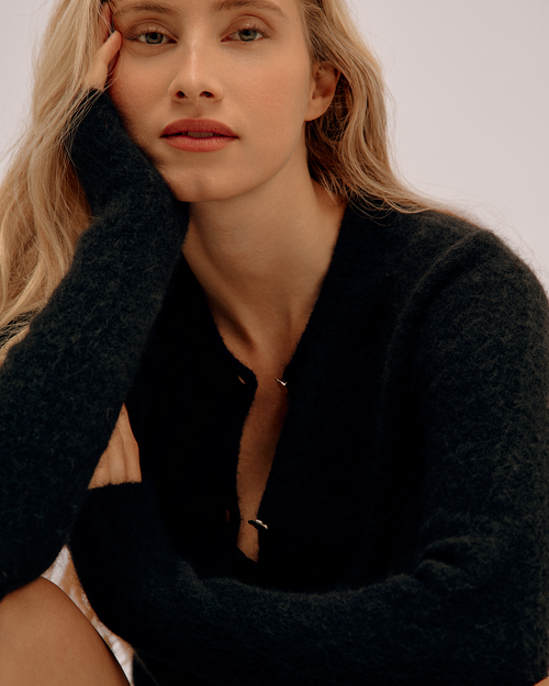 Round Neck Cardigan with Alpaca - Dark